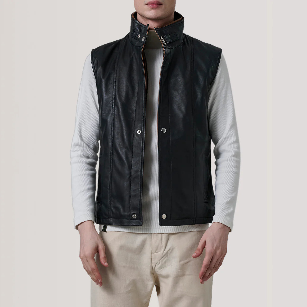 • Zane Black Leather Vest with the following changes: