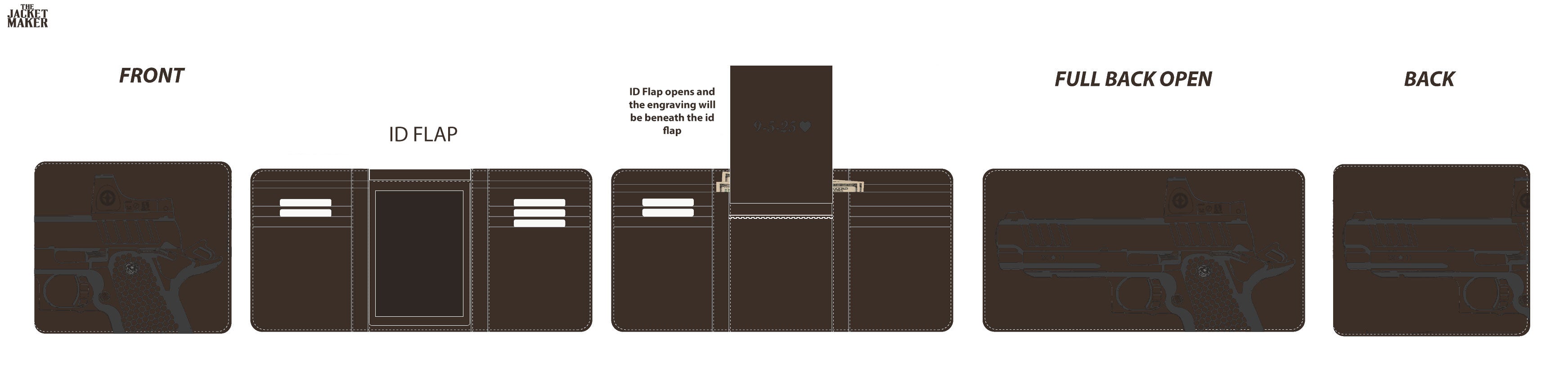 • Engraving at the back and beneath the ID flap of the wallet (as per mock)