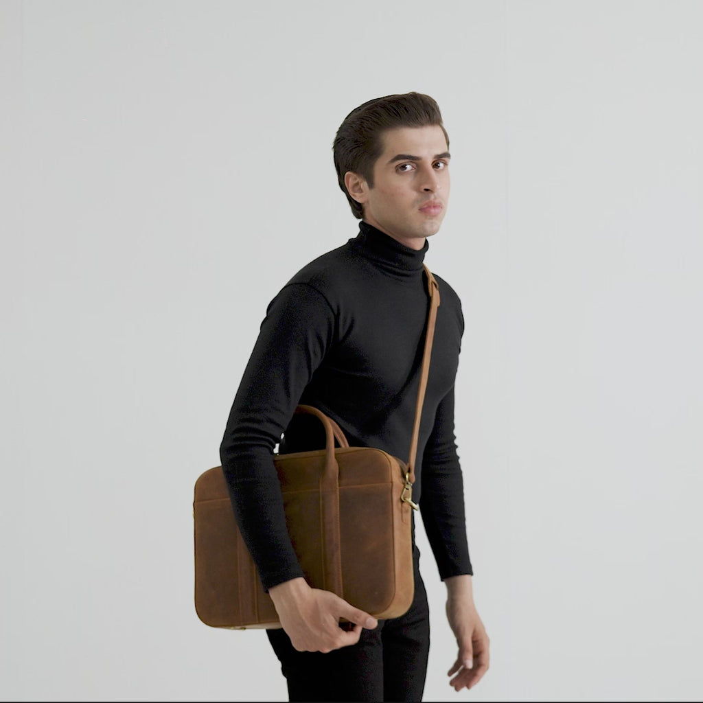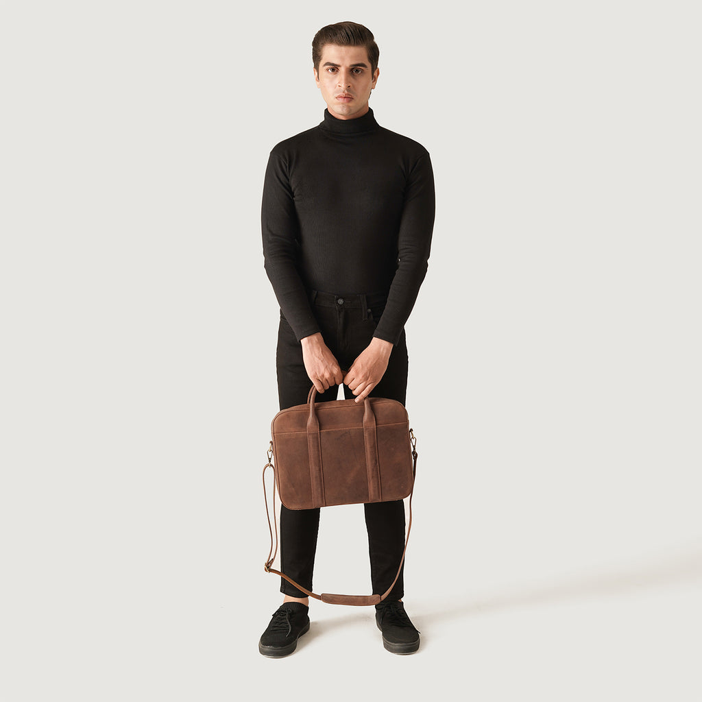 The Captain Vintage Tan Brown Leather Briefcase